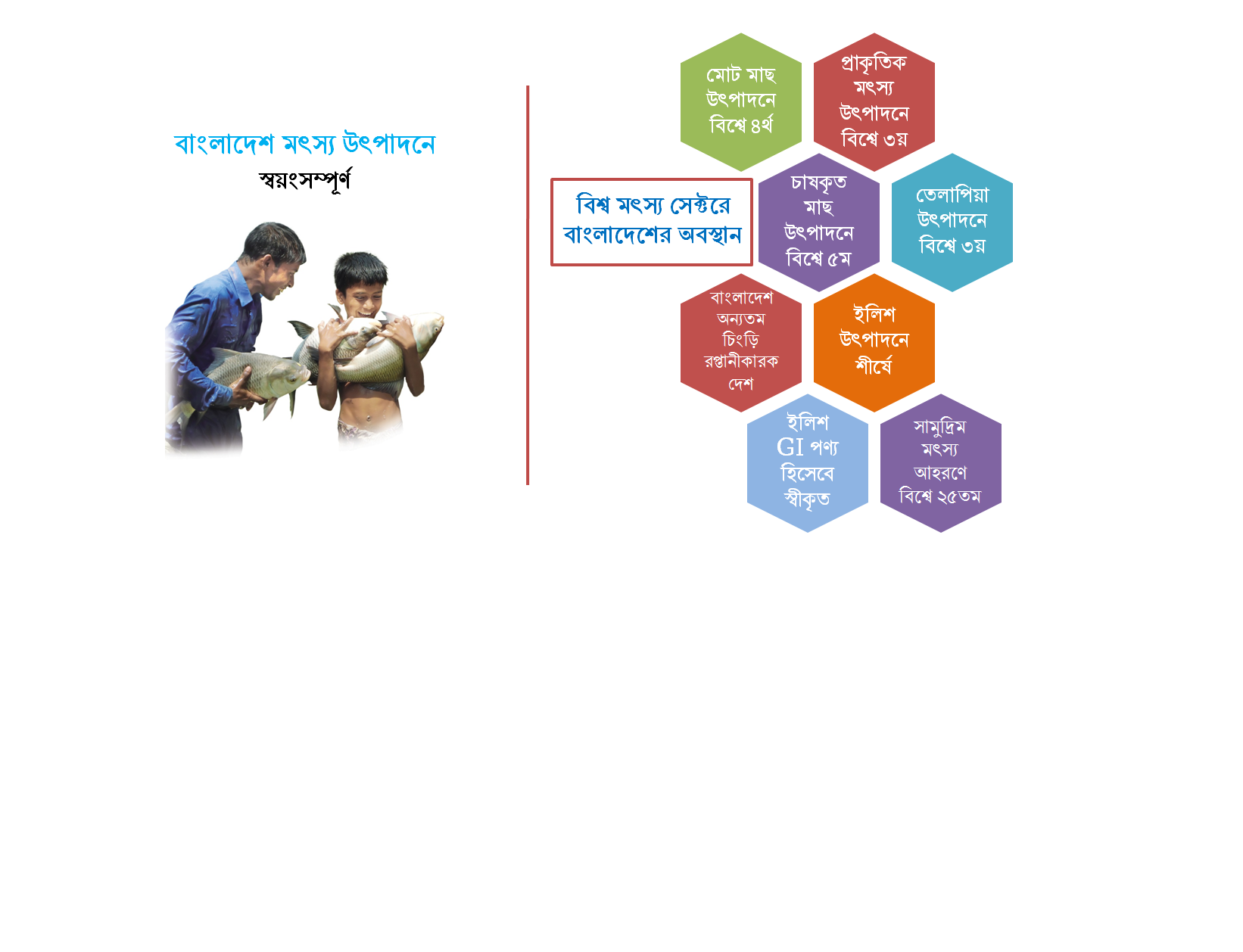 কৃষি নির্ভর বাংলাদেশের অর্থনৈতিক উন্নয়নে মৎস্য সেক্টরের অবদান অত্যন্ত গুরুত্বপূর্ণ ও অনস্বীকার্য। বাংলাদেশ অর্থনৈতিক সমীক্ষা ২০২১ অনুযায়ী দেশের মোট জিডিপি’র ৩.৫৭ শতাংশ এবং কৃষিজ জিডিপি’র এক-চতুর্থাংশের বেশি (২৬.৫০ শতাংশ) মৎস্যখাতের অবদান। আমাদের দৈনন্দিন খাদ্যে প্রাণিজ আমিষের প্রায় ৬০ ভাগ আসে মাছ থেকে। বিগত তিন অর্থবছরে (২০১৮-১৯, ২০১৯-২০ ও ২০২০-২১) মোট মৎস্য উৎপাদন ছিল ৪৩.৮৪, ৪৫.০৩ ও ৪৬.২১ লক্ষ মেট্রিক টন। বিগত তিন অর্থবছরে (২০১৮-১৯, ২০১৯-২০ ও ২০২০-২১) ৭৩১৭১.৩২, ৭০৯৪৫.৩৯ ও ৭৬৫৯১.৬৯ মে.টন মৎস্য ও মৎস্যজাত পণ্য রপ্তানি করে যথাক্রমে ৪২৫০.৩১, ৩৯৮৫.১৫ ও ৪০৮৮.৯৬ কোটি টাকার বৈদেশিক মুদ্রা অর্জিত হয়েছে। অভ্যন্তরীণ মুক্ত জলাশয়ে মাছ উৎপাদন ও বদ্ধ জলাশয়ে চাষকৃত মাছ উৎপাদনে বাংলাদেশ বিশ্বে যথাক্রমে ৩য় ও ৫ম স্থান অধিকার করেছে (এফএও, ২০২০)।